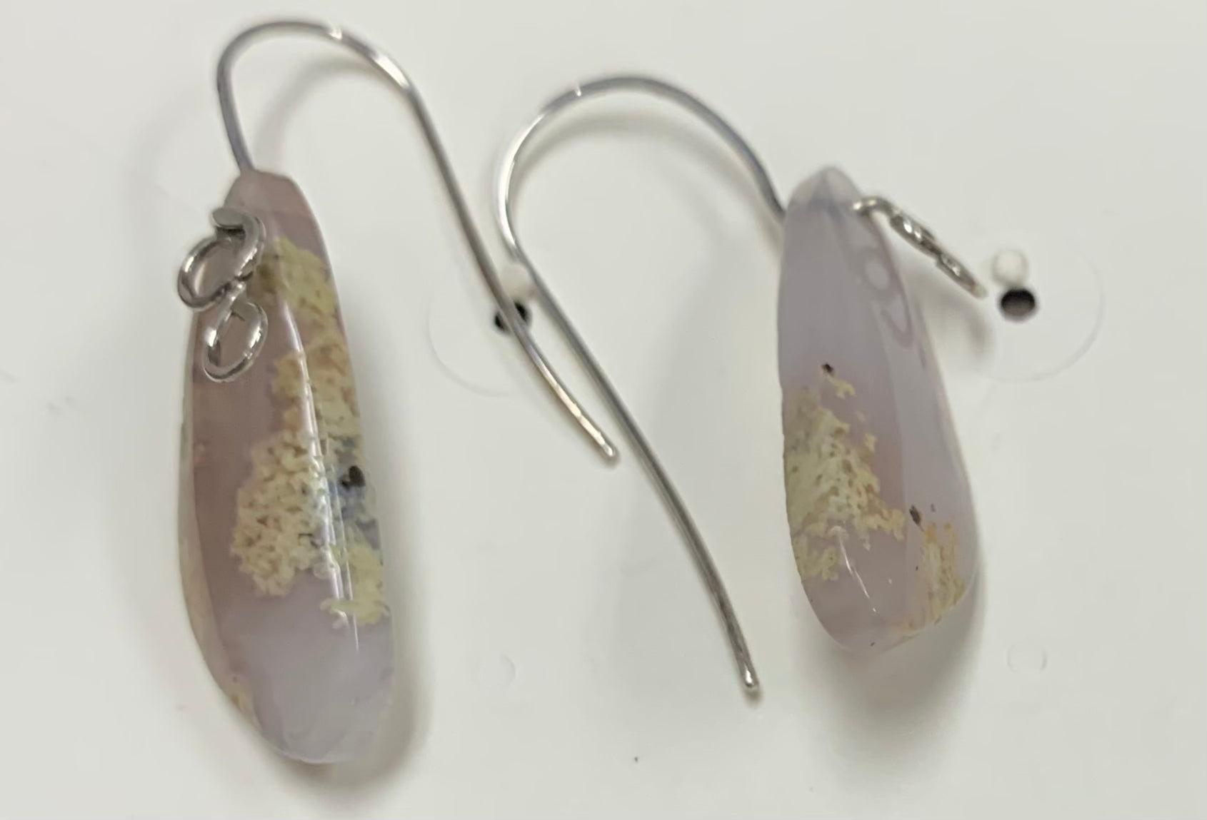 Natural agua nuevo stones with decorative hand crafted sterling silver ear wires.